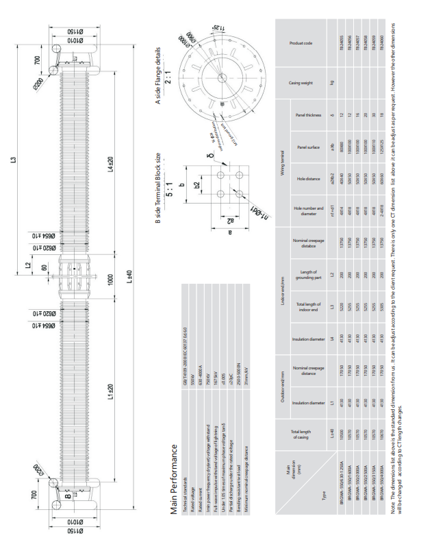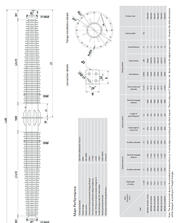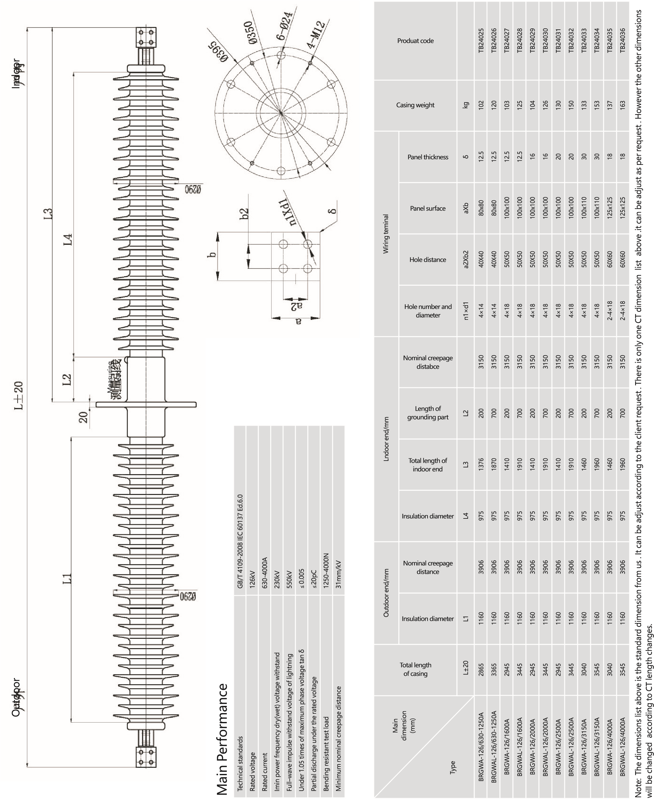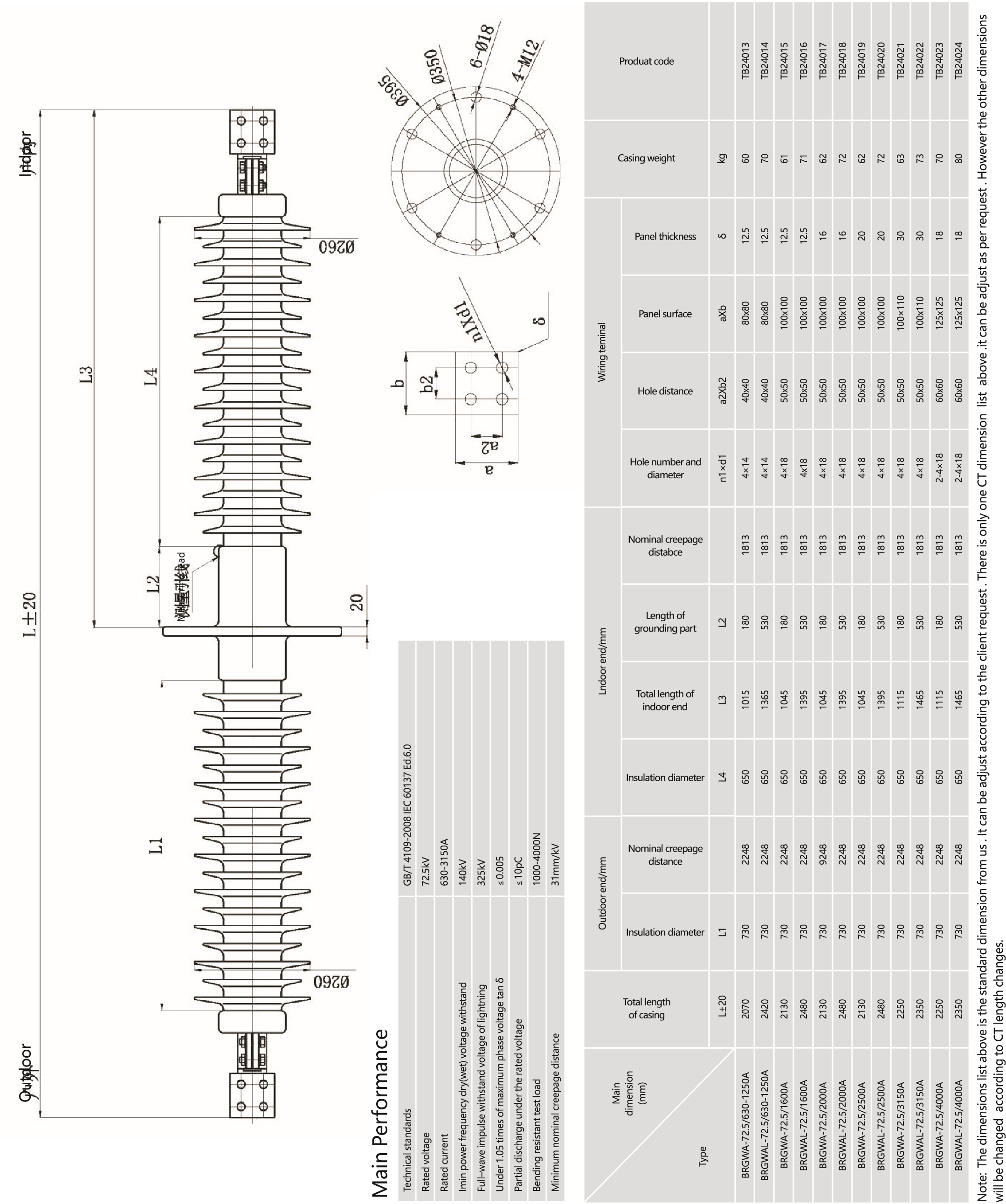 Wall Bushing is mainly used for high voltage couductors supplied by power stations and substation to pass through walls or floors. The dry type wall bushing is soild insulation which has the advantages of good pollution resistance,high reliability,no oil leakage and eveironmental pollution,small size and light weight.easy installation and free maintenance.
