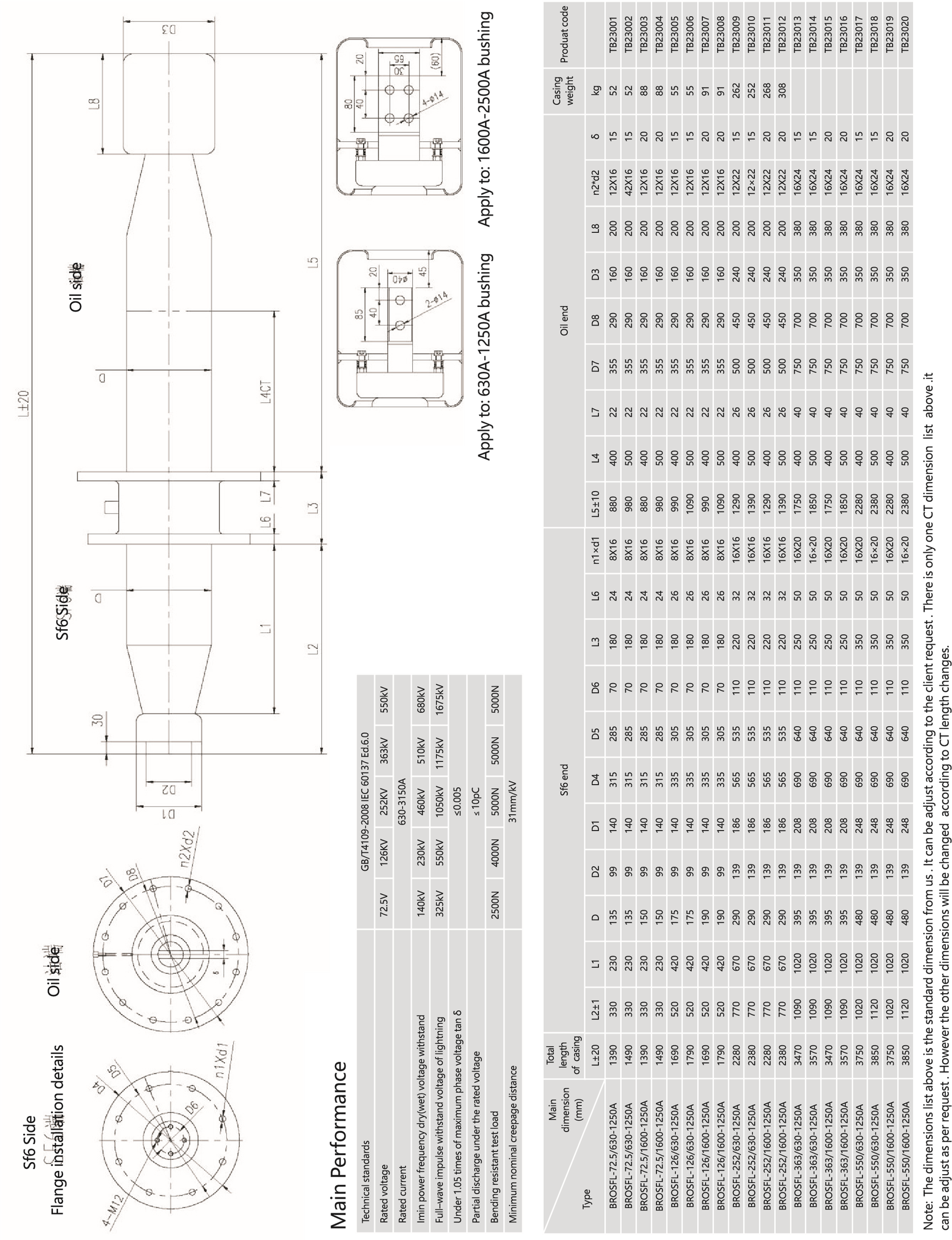 Oil-SF6 Bushing is mainly used for transition connection between oil immersed power transformer and SF6 bus or GIS,one side is in oil and the other side is in SF6 during the operation..