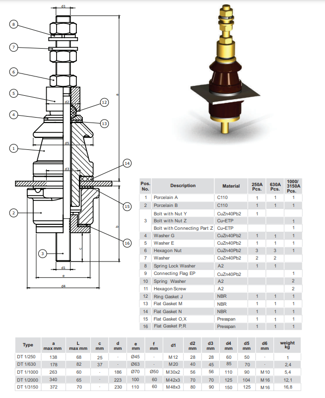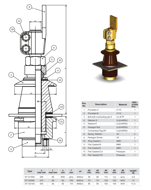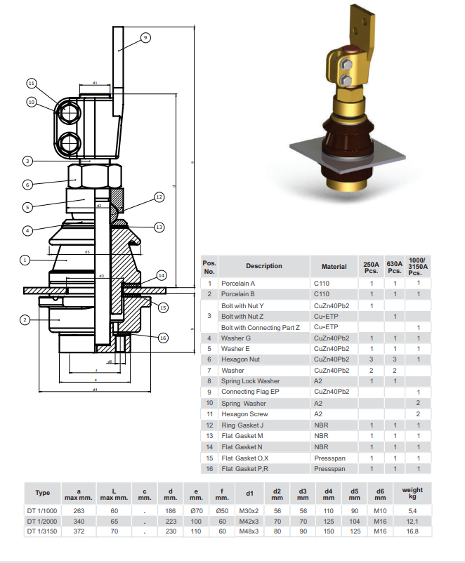 DIN 42539 DT 3/1000A - DT 3/3150A