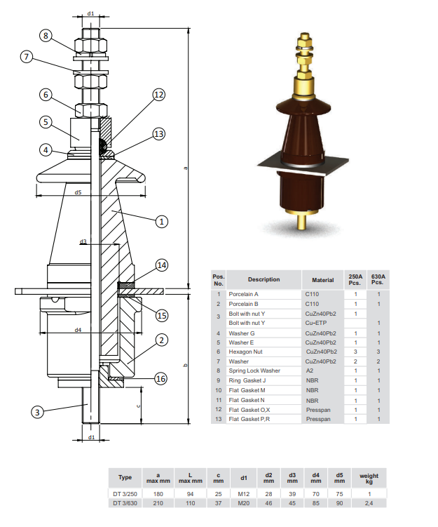 DIN 42539 DT 3/250A - DT 3/630A