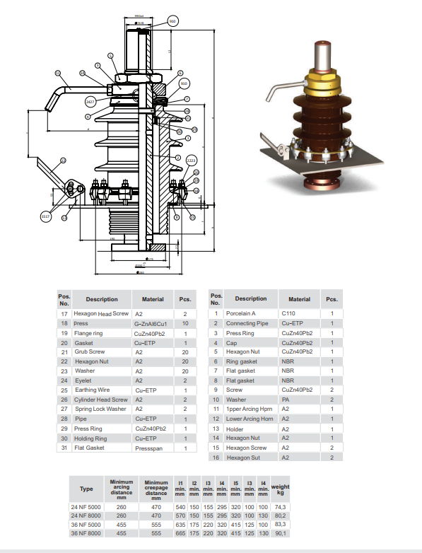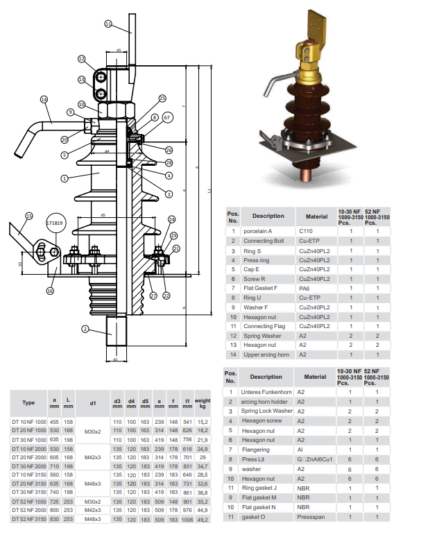 DIN 42533 DIN 42534 10 - 30 Nf 1000A / 3150A - 10 - 52 Nf 1000A / 3150A